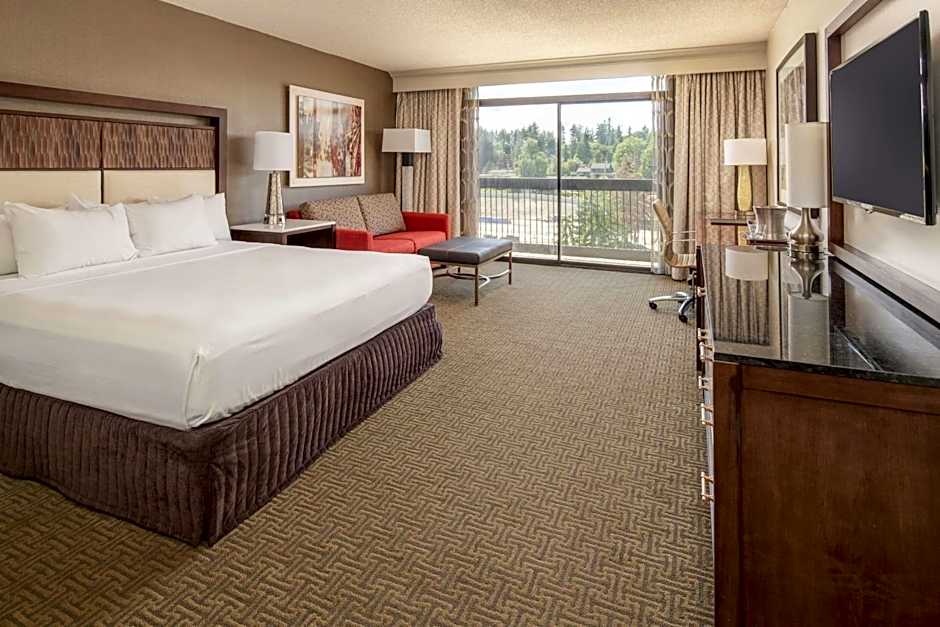 A 40" flat-screen HDTV, a work desk, and a coffee machine are featured in this room. Extras include a digital alarm clock, a bathrobe, a continental breakfast, coffee, and tea. The bathroom includes an accessible bathtub or a roll-in shower.